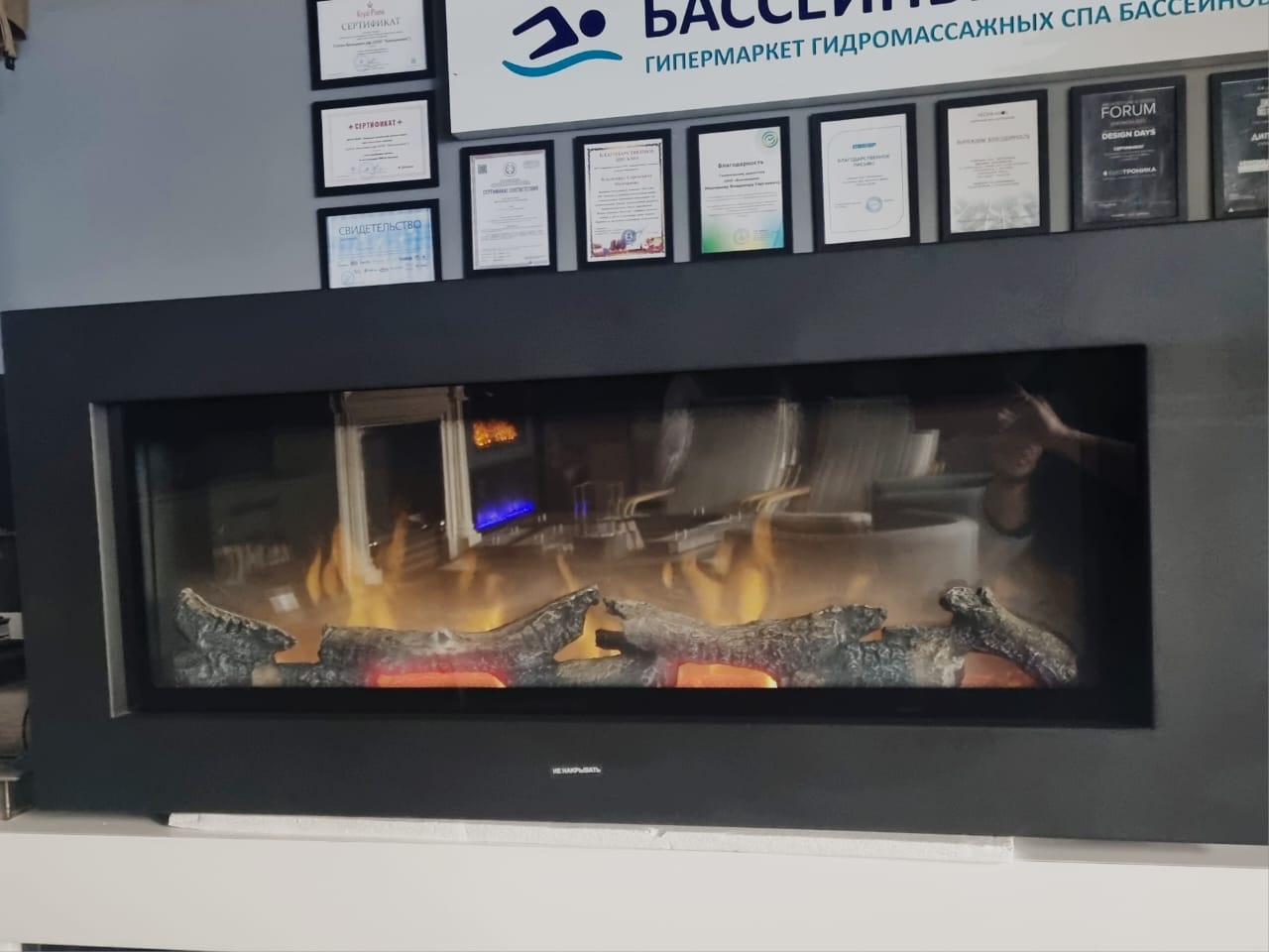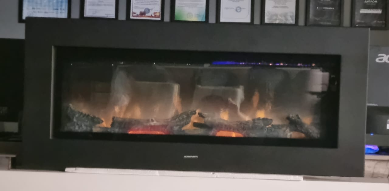 Дрова, находящиеся в очаге, создают эффект мерцания за счет встроенных в них светодиодов.