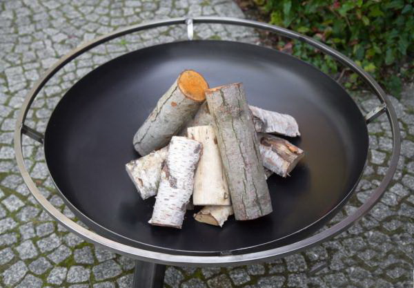 Очень удобный и красивый очаг для костра, объединяющий дровницу и костровую чашу.