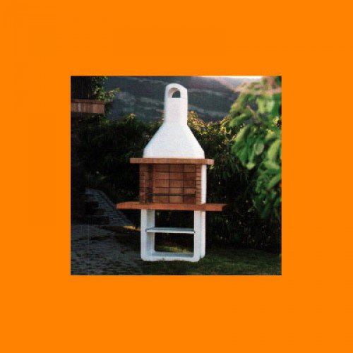 Барбекю из конгломерата белого цвета, плита из греса. Топка и консоль из огнеупорного кирпича со встроенными направляющими и решеткой для жарки.
