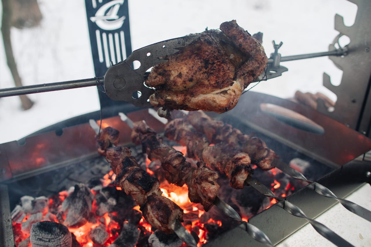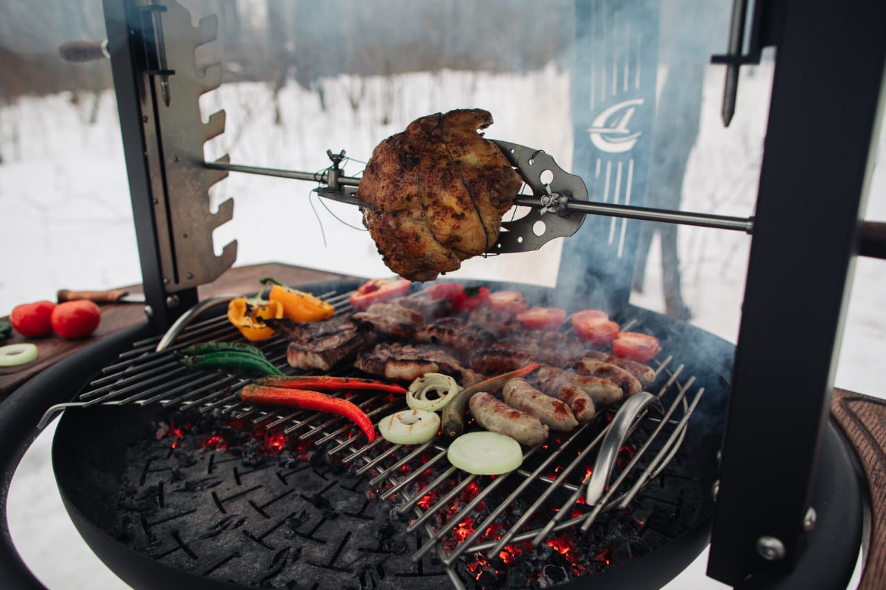 - Комплектация Автоматический вертел Столешница — 2 шт Кочерга Зольник Решётка барбекю