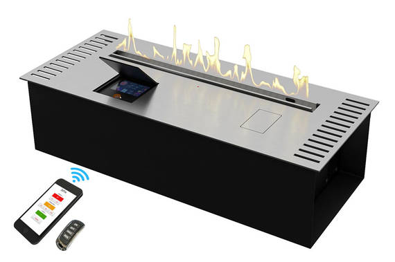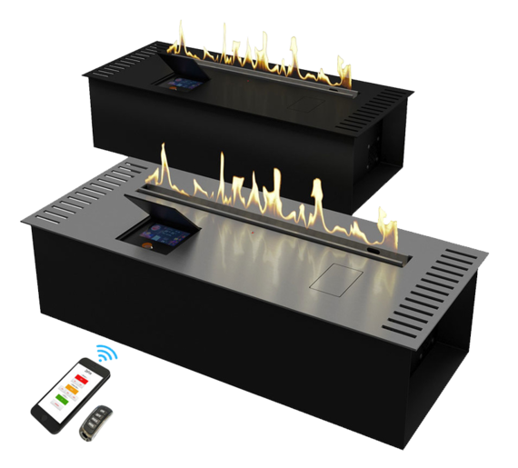 Автоматический биокамин Zefire Automatic 700 является настоящим прорывом в современном производстве. Благодаря специальной технологии управлять прибором можно при помощи смартфона, планшета или другого гаджета. При этом такое устройство совершено безопасно в использовании, не выделяя запаха, гари и дыма. В случае возникновения любых аварийных ситуаций камин отключается автоматически. Что касается его охлаждения, то за это отвечают встроенные кулеры. Линия огня: 500 мм.