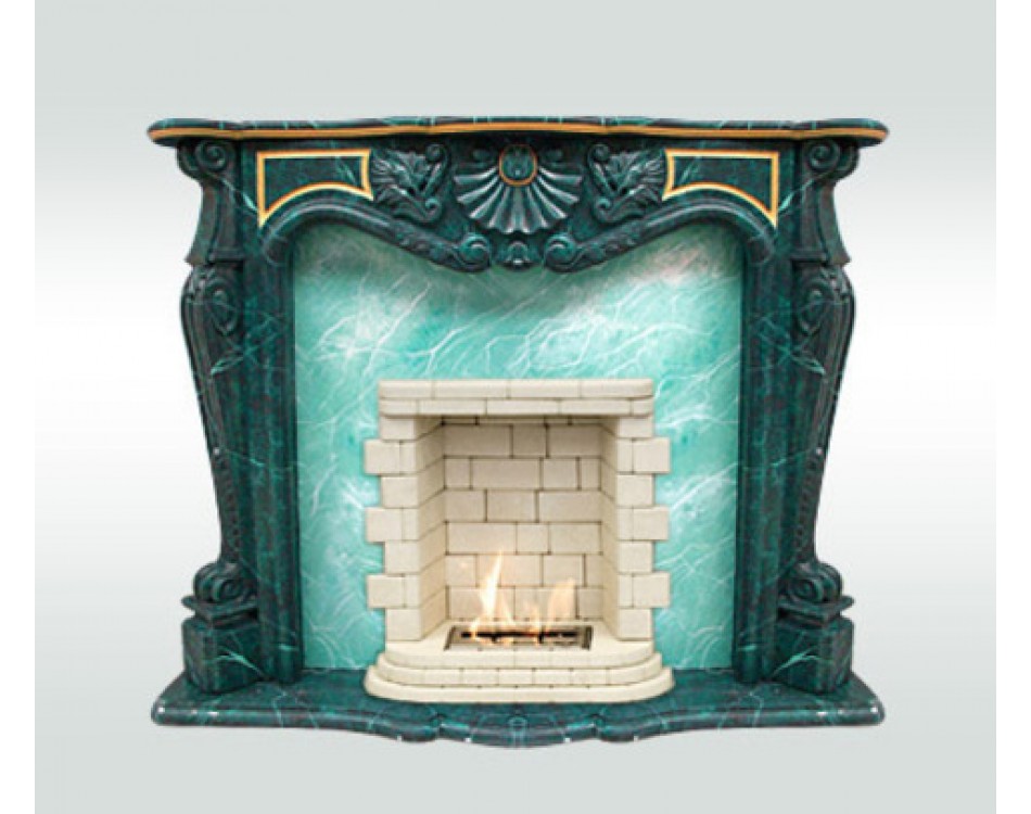 Роскошный портал модели выполнен из литьевого белого мрамора, отделан мраморной крошкой и позолотой.