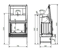 Модель укомплектована фирменным отопительным блоком. В качестве декора и для защиты от открытого пламени камин можно дополнить приставным огнеупорным стеклом.