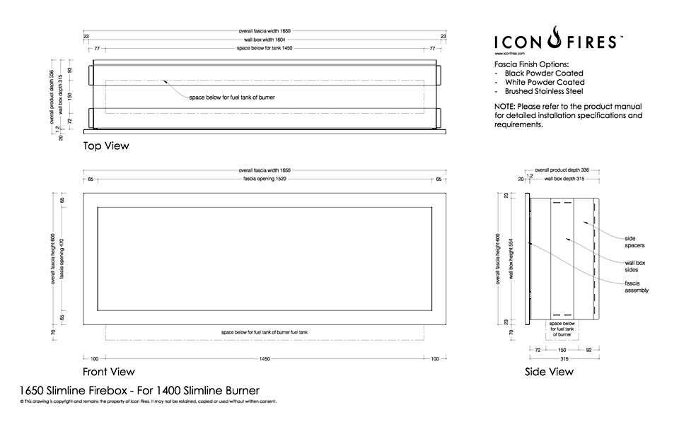 Встраиваемый биокамин ICON FIRES Slimline Firebox 1650FSS