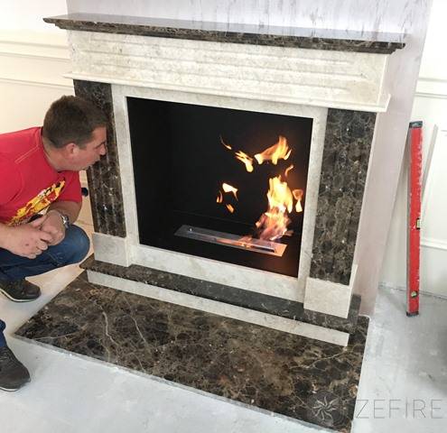 Биокамины классические в портале из Мрамора ZeFire - это обаяние современного стиля и изысканность в интерьере. Живой огонь очага в обрамлении портала из Мрамора не только создаст комфортную и уютную атмосферу в вашем доме, но и согреет в морозы. В отличие от электрических каминов, создающих иллюзию огня - в биокаминах ZeFire пламя настоящее. При этом биокамины в порталах из Мрамора не требуют установки дымохода и не выделяют продуктов горения, так как работают на экологически чистом биотопливе. Всё что нужно для установки биокамина в квартире - это заправить его биотопливом и отрегулировать силу пламени.