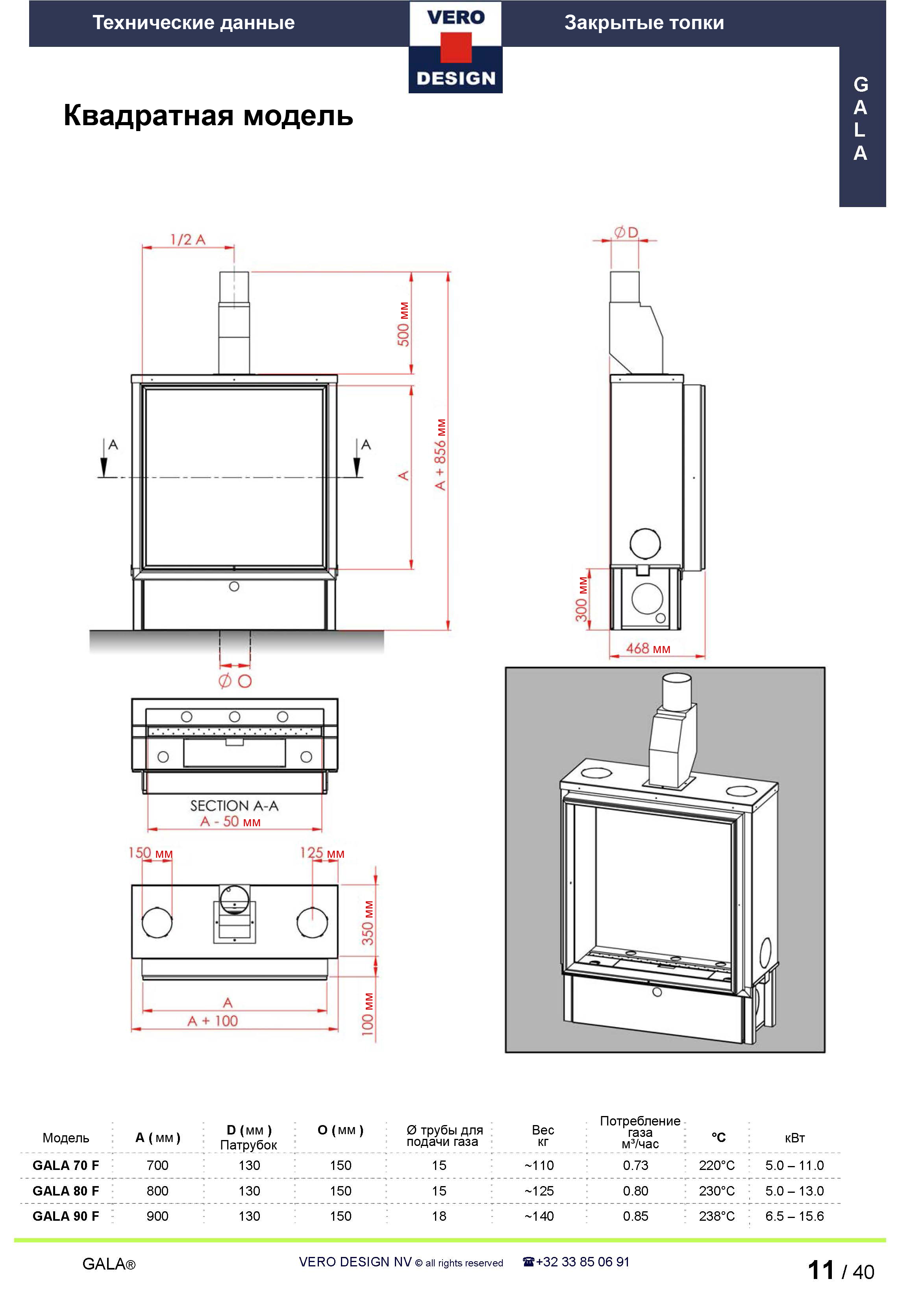 Газовый камин Vero Design Gala GA 70 F – квадратная встраиваемая модель с большим прямым окном из огнепрочного стекла. Рассчитана на использование природного газа бутан или баллонного газа пропан, что позволяет устанавливать камин не только в загородном доме, но и в городской квартире. Выражает актуальные на сегодняшний день веяния в создании интерьеров в стиле хай-тек.