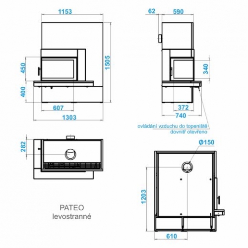 - Диаметр дымохода, мм: - 150