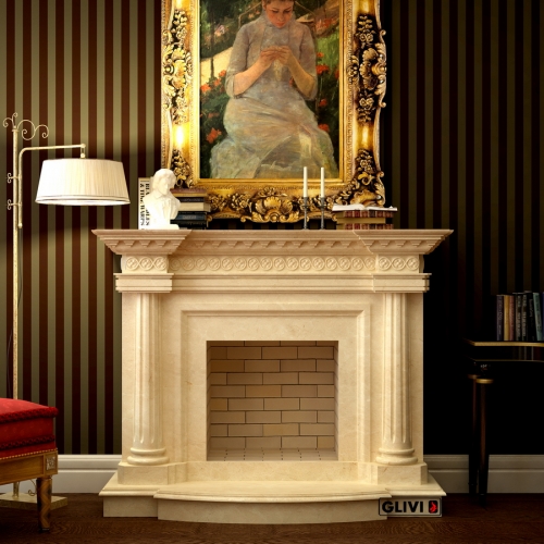 - Камин выполнен из полированного мрамор Crema Marfil.