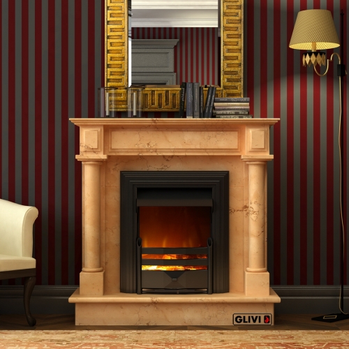 - Камин выполнен из полированного мрамора Rosa Perlino.