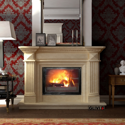- Камин выполнен из полированного мрамора Crema Marfil.