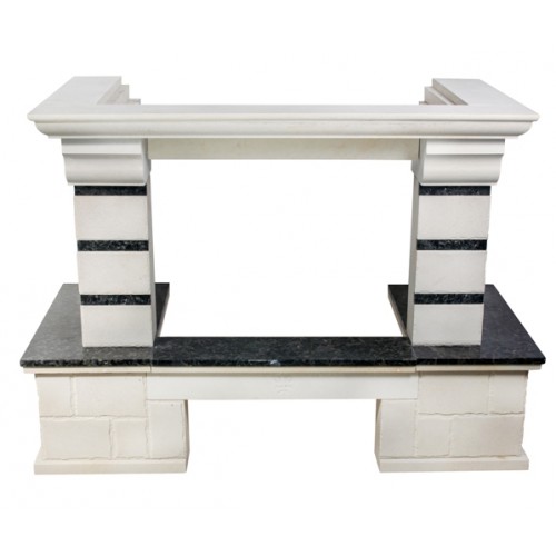 - Материал: шлифованный песчаник в форме кирпичиков, золотистый или белый цвет, полки - LabradoriteПодходящие топки шириной „700 мм” с прямым стеклом