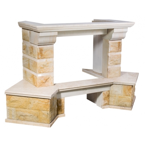 - Материал: колотый песчаник, золотистый или белый цвет, полки и балка - мрамор Best CreamПодходящие топки шириной „700 мм” с прямым стеклом