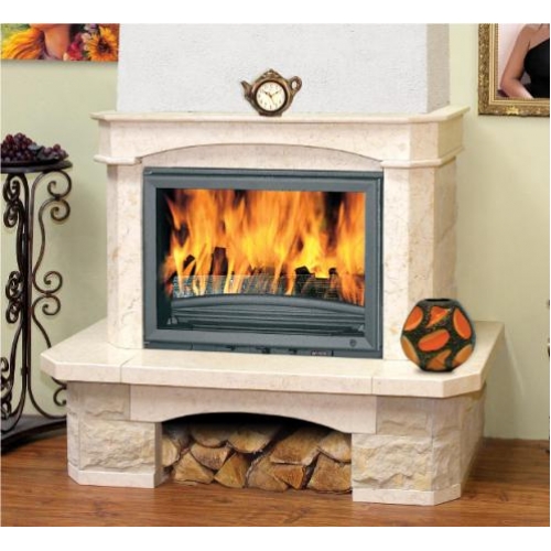 - Облицовка из натурального полированного мрамора Breccia и колотого мрамора crema marfil.Вариант прямой и угловой. Подходящие топки 700 серии с прямым стеклом. Размеры: пристенный вариант - 126x107x65 см