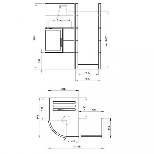 - Присоединение дымохода: - верхнее, заднее, боковое