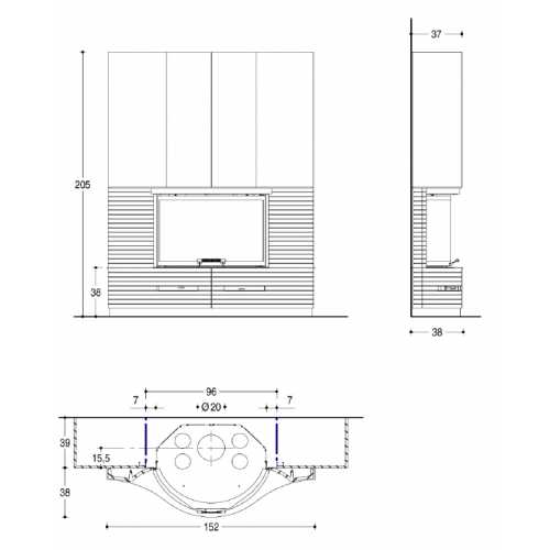 Встроенный дровяной камин с ярким дизайном. Облицовка из майолики ручной работы доступна в трех вариантах цвета. Основание, рамки и профили выполнены из нержавеющей стали, а кожух может быть стальным под покраску или медным. Камин совместим с топкой HT 760T