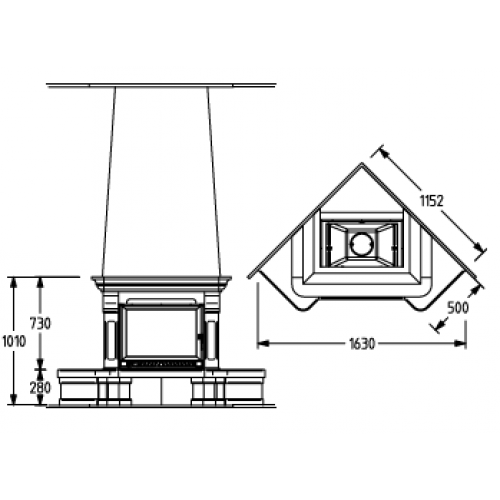 • Материалы : Золотисто-песочный Edelroc или белый Edelroc + топочная плита из кирпича