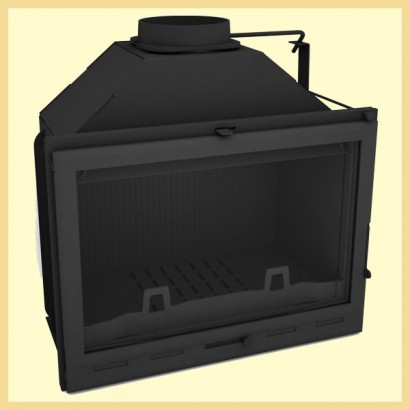 Корпус топки изготовлен из жаропрочной стали, а камера горения футерована чугунными вставками. Высокий дымосборник обеспечивает хорошую тягу в дымоходе. Топка оснащена выдвижным зольным ящиком, встроенной шиберной заслонкой, которая позволяет регулировать тягу в дымоходе, технологией "чистое стекло" (система подачи воздуха в топку) и системой дожига вторичных газов.