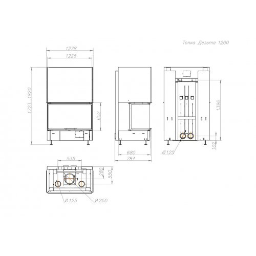 • - Диаметр дымоходного патрубка–250 мм