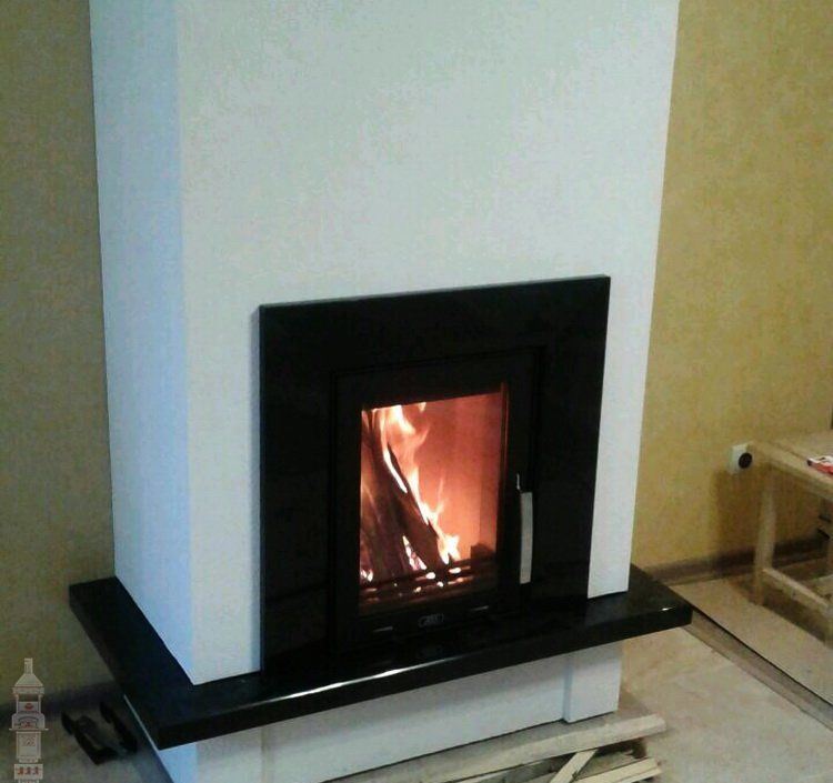 Дымосборник имеет плоскую форму. Это позволяет встраивать топку в старые открытые камины и ниши с ограниченной высотой. Топка с низким дымосборником имеет высокий КПД, т.к. дымовые газы закручиваются сильнее и отдают больше энергии. Такая топка не предназначена для эксплуатации в отрытом режиме, ведь с поднятой или открытой дверцей дым пойдет в помещение.