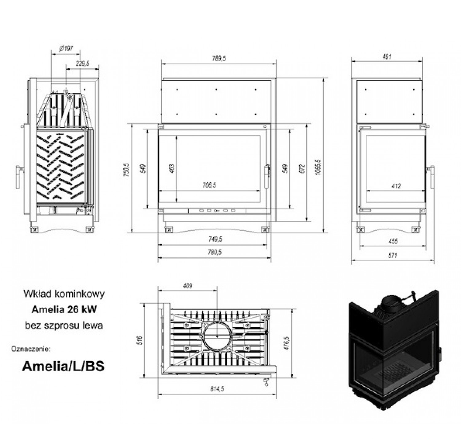 Amelia L/BS (угловое стекло слева)— топка отпольской компании KRATKI для установки взагородном доме, даче или квартире. Топки серии Amelia L/BS— это отличные характеристики, высокое качество исполнения, эксплуатационная безопасность. Представленная модель отличается отбазового необычным исполнение дверцы— отличный вид наживое пламя обеспечивает угловая стеклянная дверца. Рамка топочной дверцы может быть выполнена под «золото» или «античное золото». Особенности оборудования серии Amelia L/BS отKRATKI: Чугунная топка непрерывного сгорания; Топка высокой мощности, предназначена для больших помещений— площадь до180 кв.м.; Стеклянная угловая дверца; АВ атоматический доводчик обеспечивает плавность закрытия дверцы топки; Теплоемкость прибора увеличивают ребра повсему корпусу; Топливо— сухие дрова длиной до500 мм; Стекло— термостойкая стеклокерамика, предел нагрева 800 С; Полная герметичность дверцы; Система «двойного дожига»; Прозрачность стекла обеспечивает система встроенного обдува; Предусмотрен держатель дров— непозволяет рассыпаться при открытии дверцы; Дно топочной камеры имеет отверстие для золы.