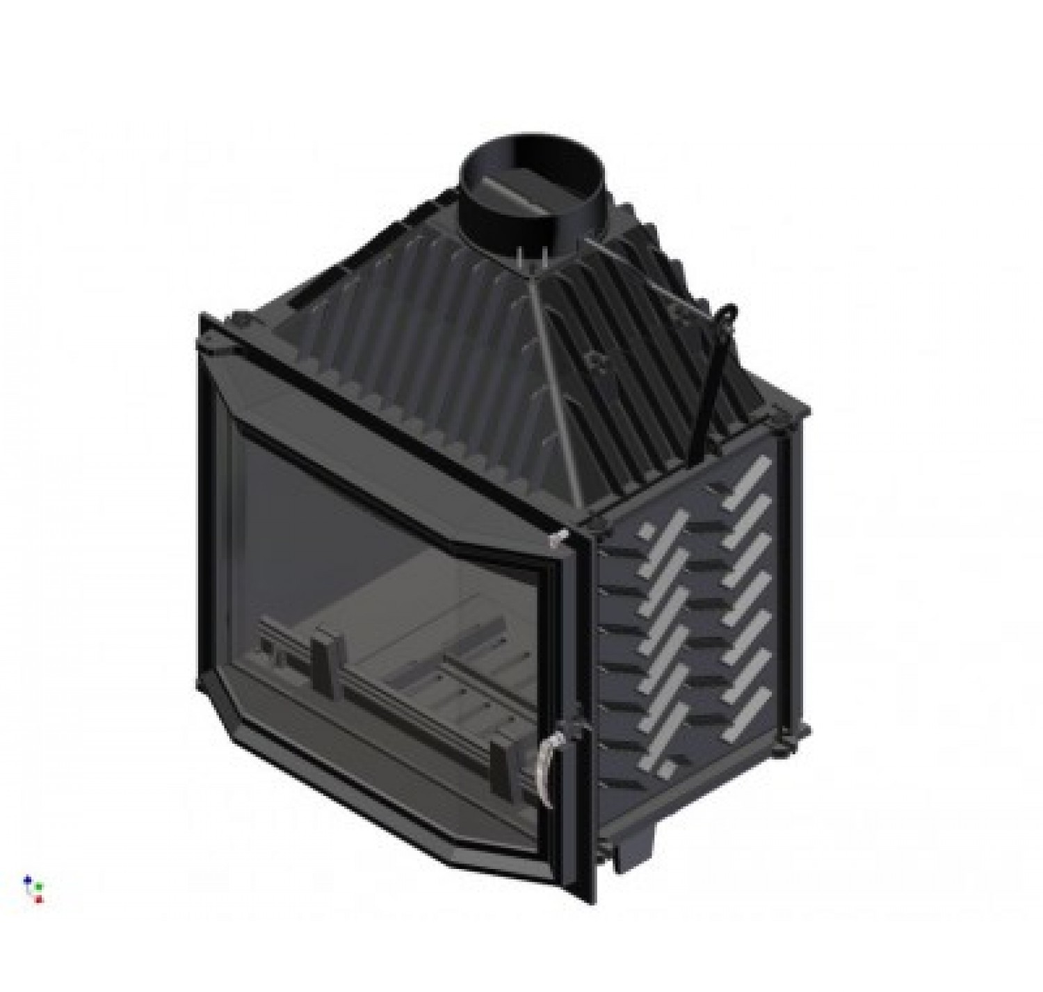 Amelia PR(призма)— топочная камера или топка-вкладыш, предназначена для отопления дома площадью до250 кв.м. Корпус данной топки выполнен из чугуна— материала имеющего хорошие эксплуатационные характеристики. Топка большой мощности ишироким стеклом призматической формы Amelia PRнесомненно станет главным акцентом винтерьере загородного дома или дачи. Выпуклая форма стекла (призматическая) создает ощущение объемного огня, притягивая взгляд. Особенности оборудования серии Amelia РRотKRATKI: Чугунная топка непрерывного сгорания; Топка высокой мощности, предназначена для больших помещений; Топка спризматическим стеклом; Теплоемкость прибора увеличивают ребра повсему корпусу; Топливо— сухие дрова длиной до500 мм; Стекло— термостойкая стеклокерамика, предел нагрева 800 С; Полная герметичность дверцы; Система «двойного дожига»; Топка имеет съемную ручку надверце; Прозрачность стекла обеспечивает система встроенного обдува; Предусмотрен держатель дров— непозволяет рассыпаться при открытии дверцы; Дно топочной камеры имеет отверстие для золы.