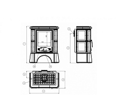 Стальная топка с прямым стеклом. Подъёмная дверца (система Easy-Lift). Горизонтальное открывание двери для чистки стекла. Ширина дверки 536 мм, высота - 548 мм.Возможно подключение воздуха из-вне.