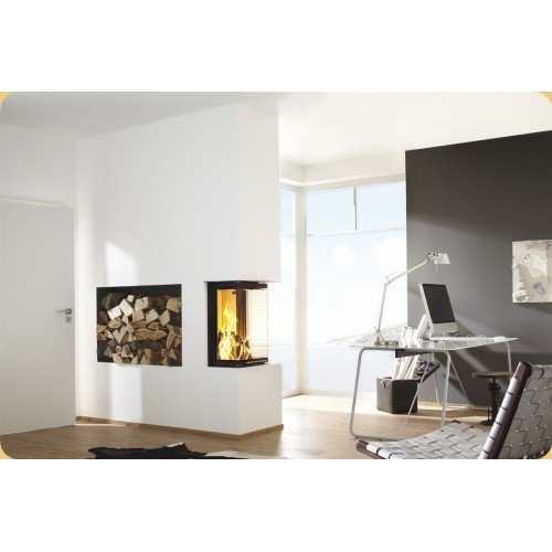 Трёхсторонняя каминная топка. Топочная камера футерована шамотом. Подъёмный механизм двери (система Easy-Lift). Ширина дверки 248/405/248 мм, высота - 669 мм. Возможно подключение воздуха из-вне.