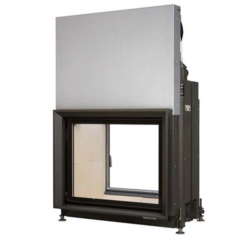 Двухсторонняя каминная топка с прямым стеклом. Топочная камера футерована шамотом. Подъёмный механизм двери (система Easy-Lift) с одной стороны. С другой стороны дверца откидывается для чистки. Возможен вариант топки с подъёмным механизмом с двух сторон (по запросу). Ширина дверки 732 мм. Высота дверки 592 мм. Возможно подключение воздуха из-вне.