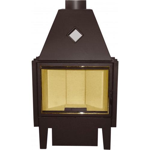 Модель принадлежит к серии топок с призматической камерой сгорания, что делает ее удобной не только для пристенной, но и для угловой установки. Дверь оснащена прямым стеклом способным выдерживать высокий нагрев, открывание двери боковое.