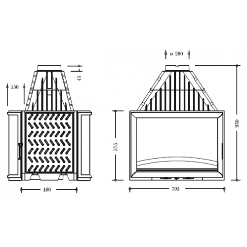 • Колосник, дефлектор, задняя стенка топки и ограничитель для дров съемные, что позволяет легко заменять детали без разборки камина (при механических повреждениях).