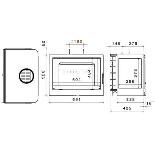 Топка K7 R (Liseo). Без дымосборника. С правым боковым стеклом.