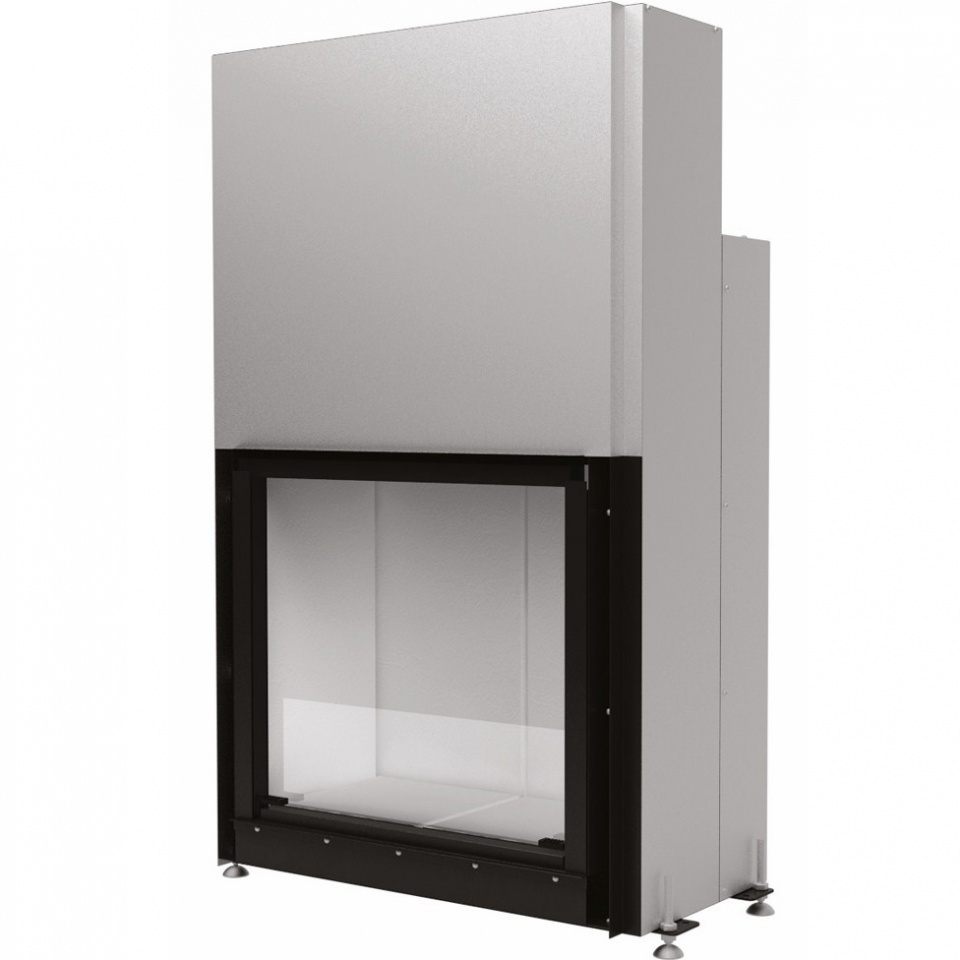 Закрытая дровяная rаминная топка MCZ Forma 75 со стеклянным фасадом, футеровкой топочной камеры из огнеупорного материала Alutec® и подъемным механизмом открывания дверцы (вертикально вверх), позволяющим визуально освободить топку от дополнительных линий, углов и ребер, тем самым сохраняя и подчёркивая её линейную конструкцию.
