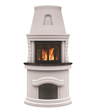 Топка выполнена из Magnofix (специальнй жаропрочный аккумулятор тепла, который оптимизирует излучение и улучшает сгорание) и чугунной основы. Единое стекло.