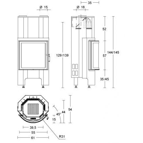 Топка 555 TA – это герметичное пространство закрытого типа, в котором горению дров не будет мешать свежий воздух. Топка закрытого плана представляет собой более лучший вариант для обогрева помещения, чем открытая топка. Топка 555 TA работает только на дровяном типе топлива. Такой топкой вы сможете обогревать помещение очень долгий период времени. Топка 555 TA имеет внутренние стенки из шамотного камня – благодаря этому легче сохранять герметичность, желанное жаркое тепло не будет улетучиваться через дымоход.