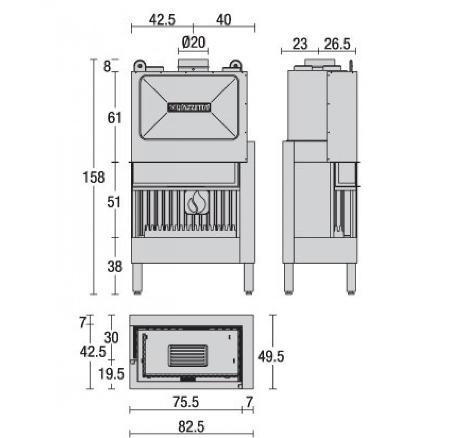 Мощная каминная топка изготовлена из высококачественной стали и чугуна.