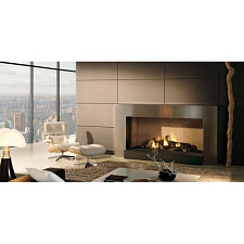 Топка имеет призматическое стекло. Подъемная дверца с жаропрочным стеклом, что позволяет наслаждаться открытым огнем, которая открывается на петлях для чистки. Стальной кожух и внутреннее основание из чугуна обеспечивают прочность и долговечность. Имеет современный дизайн.