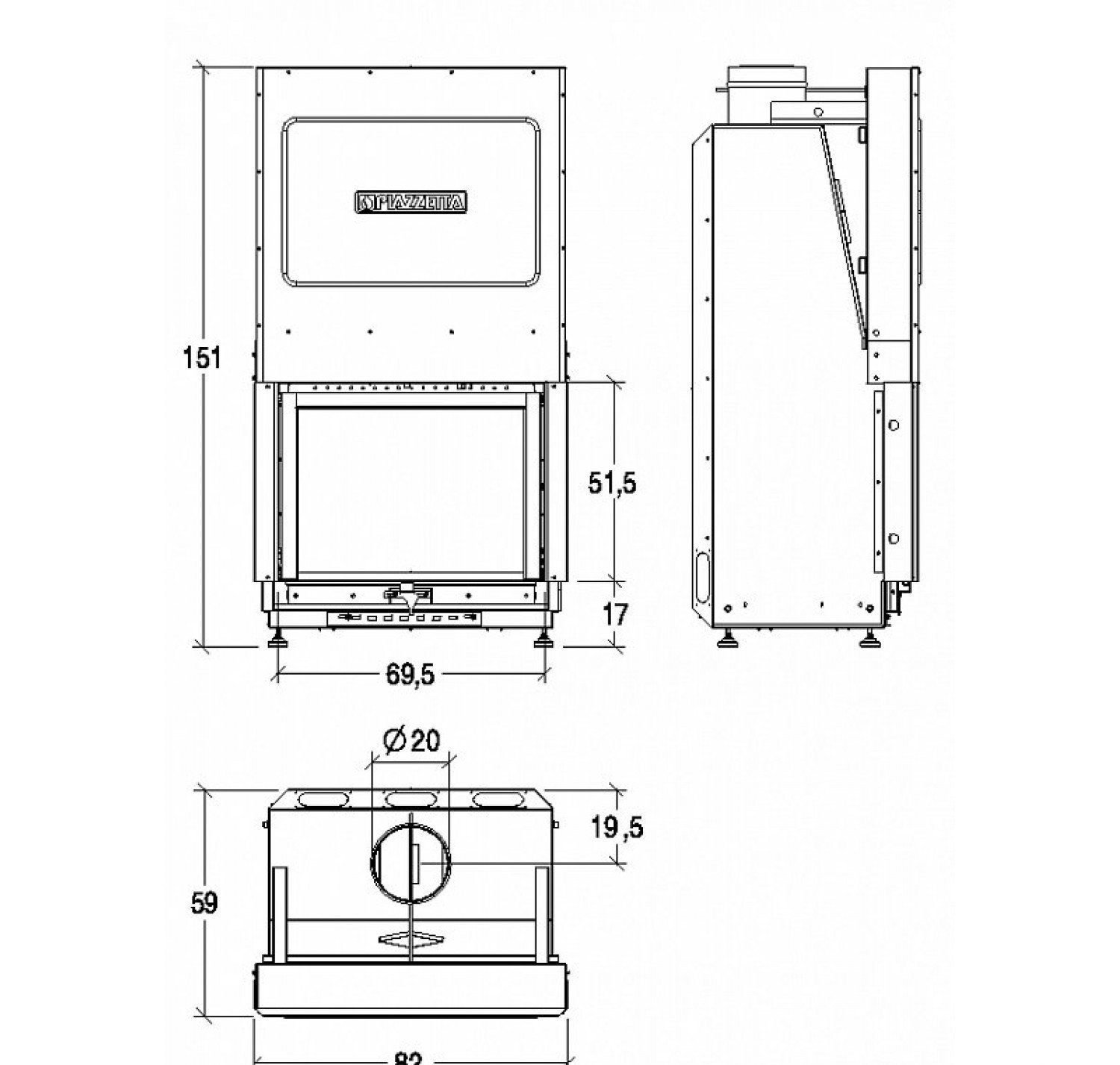 Каминная топка Piazzetta ME 70/510 произведена в Италии.