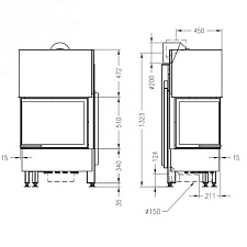 В топке имеется система длительного горения и система чистого стекла. Имеется возможность для подвода дополнительного воздуха из других помещений или улицы для процесса горения, что сводит к минимуму выжигание кислорода в помещении во время работы камина.