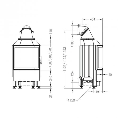 - Диаметр дымохода, мм: - 180