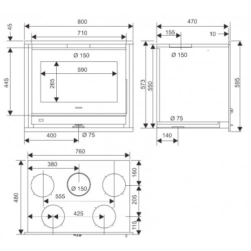 - Обогреваемая площадь: 55 м2 (слабая изоляция), 150 м2 (усиленная изоляция)
