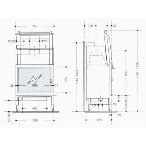 - Топки с подъемной дверцей снабжены противодымной камерой, установленной на заводе