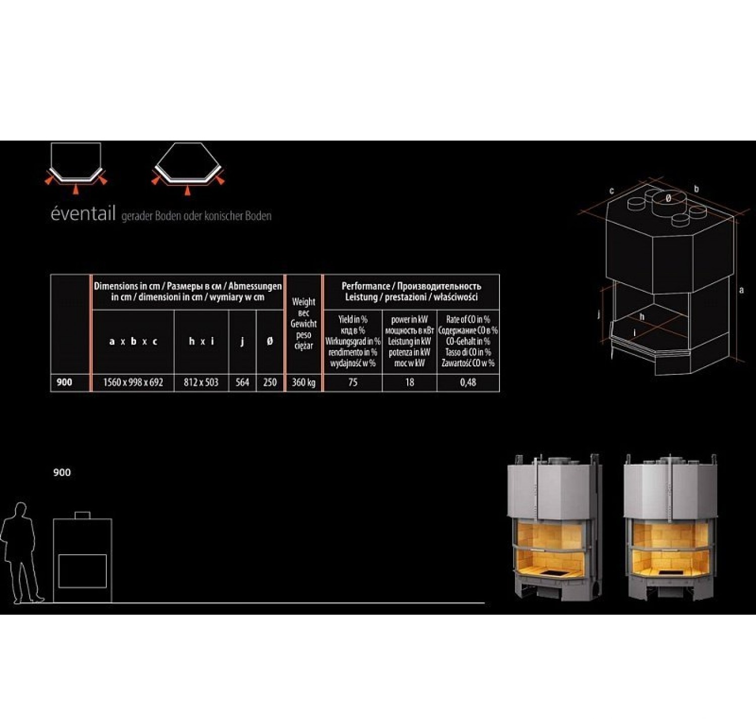 Каминная топка Totem eventail 900 (задняя стенка коническая)