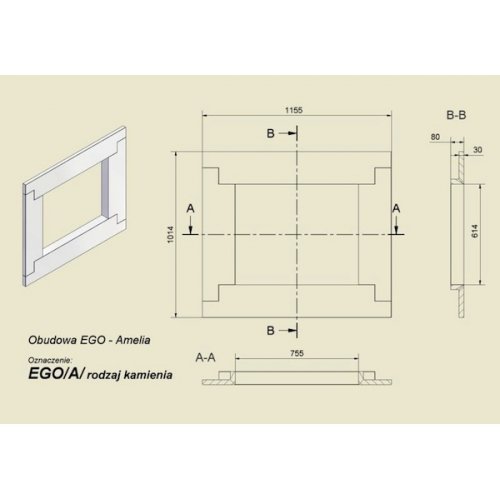 Каминный портал Kratki Crema Marfil для топок Amelia, Felix