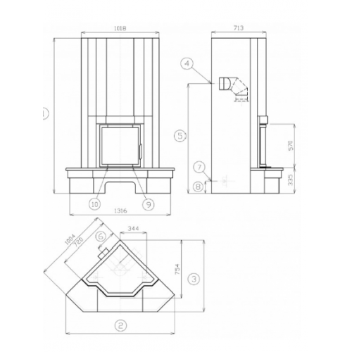 Основание камина выполнено из металлокерамики (огнестойкой стали с нанесением специальной мастики), а столешница и детали сопряжения с топочной камерой - из натурального гранита. Вытянутый прямоугольник конвекционной камеры имеет обтекаемые формы и сочетается с трехгранным стеклокерамическим окном топки и скругленным вырезом небольшой открытой дровницы.