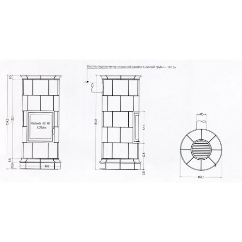 - Высота подключения 1420 мм (верхняя кромка дымовой трубы)