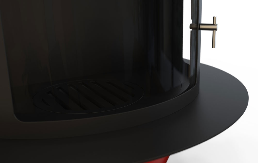 Центральный круглый дровяной камин Lorena центральной конфигурации для создания стильных изысканных интерьеров и оптимального отопления помещений. Компания Traforart, как и обычно, удивляет своих клиентов новаторством конструкторской и дизайнерской мысли. Камин LORENA имеет необычную круглую, немного цилиндрическую, но очень гармоничную и практичную конструкцию, которая чем-то напоминает домашнее барбекю. Длинный элегантный дымоход плавно переходит в верхнюю округлую часть камина. Ниже идет сам очаг – застекленный по всей окружности, с удобными дверцами и просторными стеклами, которые открывают потрясающий вид на игру пламени с любой стороны. Заключительная нижняя часть, аналогичная по форме с верхним и топочным элементом камина, имеет удобную выступающую полку по всей окружности, которая выполняет как декоративные, так и практичные функции. Также вы можете выбрать цвет облицовки камина – черный, серый, фиолетовый, красный, желтый, зеленый, синий и любой другой.