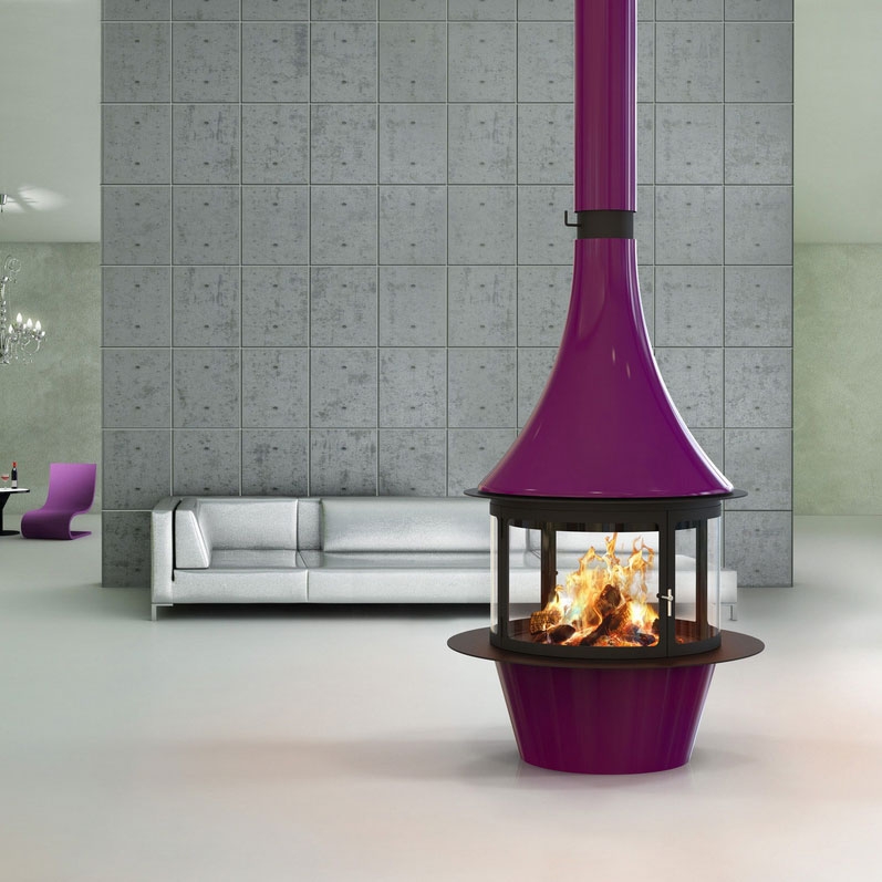 Центральный круглый дровяной камин Lorena центральной конфигурации для создания стильных изысканных интерьеров и оптимального отопления помещений. Компания Traforart, как и обычно, удивляет своих клиентов новаторством конструкторской и дизайнерской мысли. Камин LORENA имеет необычную круглую, немного цилиндрическую, но очень гармоничную и практичную конструкцию, которая чем-то напоминает домашнее барбекю. Длинный элегантный дымоход плавно переходит в верхнюю округлую часть камина. Ниже идет сам очаг – застекленный по всей окружности, с удобными дверцами и просторными стеклами, которые открывают потрясающий вид на игру пламени с любой стороны. Заключительная нижняя часть, аналогичная по форме с верхним и топочным элементом камина, имеет удобную выступающую полку по всей окружности, которая выполняет как декоративные, так и практичные функции. Также вы можете выбрать цвет облицовки камина – черный, серый, фиолетовый, красный, желтый, зеленый, синий и любой другой.