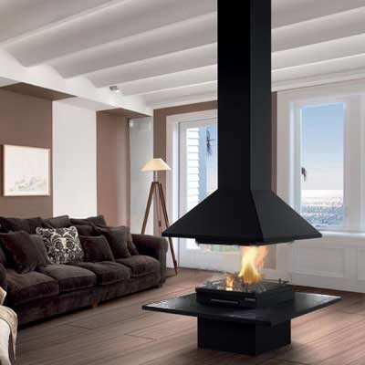 Классический центральный камин, простой в установке и безопасный в эксплуатации. Без стекла, полка - сталь, цвет камина - черный.