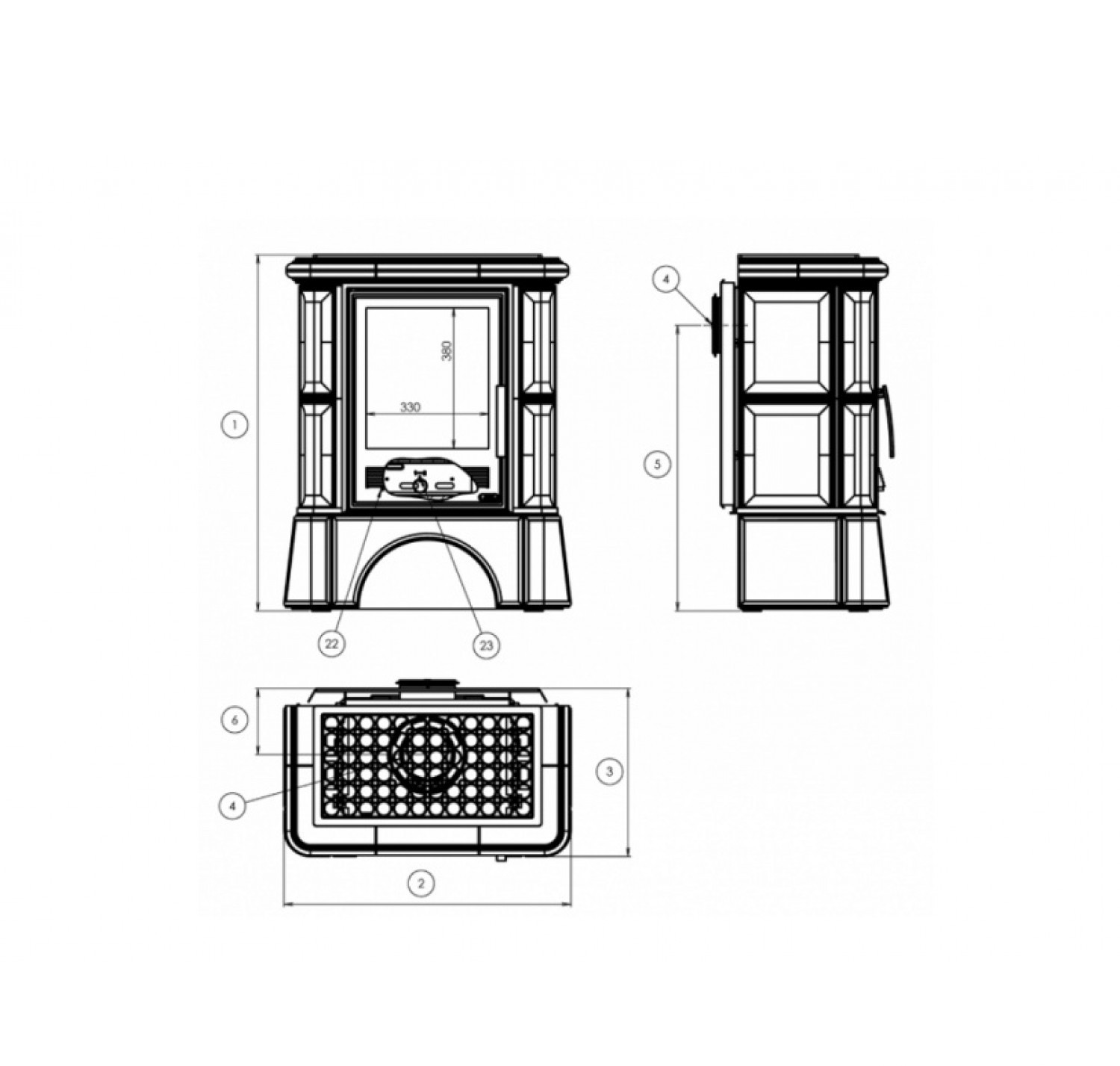 - два варианта выхода дымохода (задний, верхний);