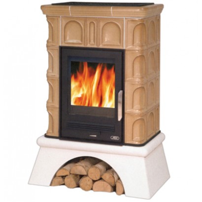 Кафельная печь Britania K - вставка комбо, белый цоколь табак